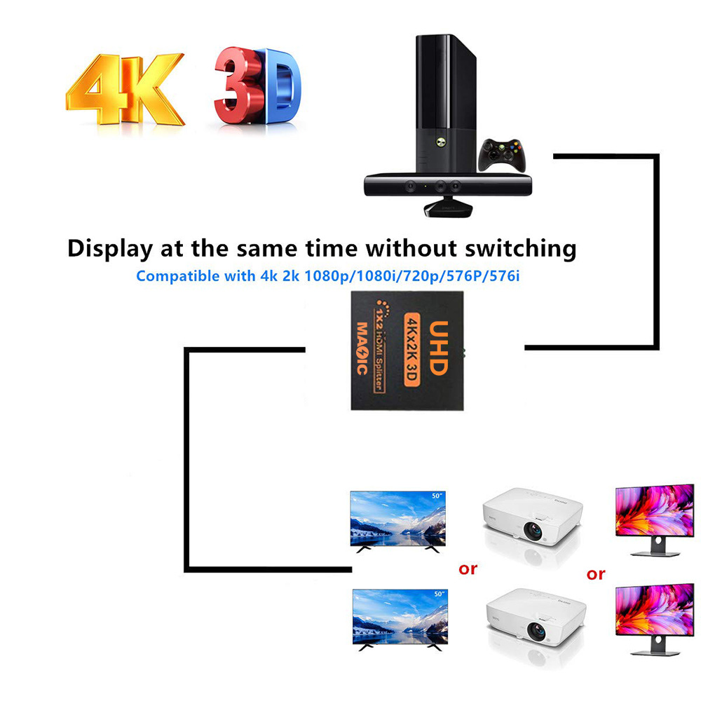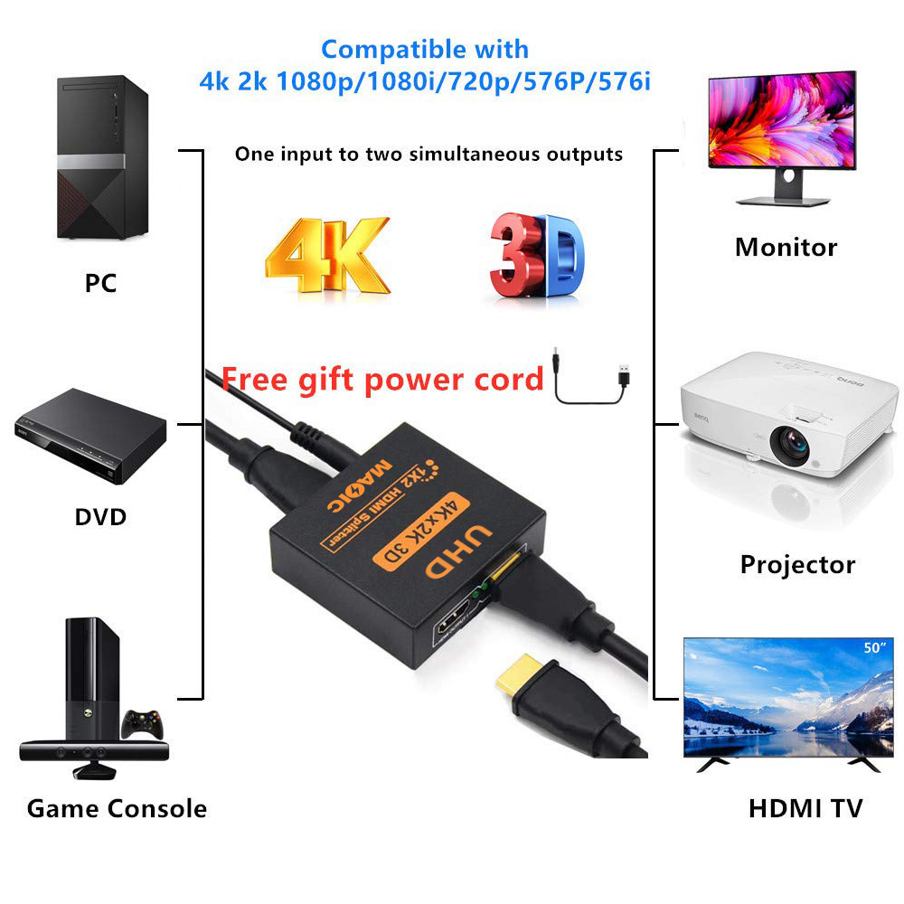 Audio video equipments hdmi audio splitter 4k hdmi splitter 1×2 hdmi splitter 1 in 2 out for HDTV laptop