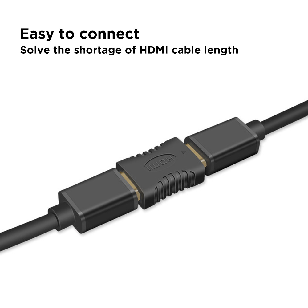 Easily join two shorter standard HDMI Cables together with Cmple convenient HDMI A Female to HDMI A Female Coupler Adapter. Ideal to extend the length and distance between computers, media streaming player or Blu-ray player to an Ultra HD TV, monitor or projector with HDMI input.