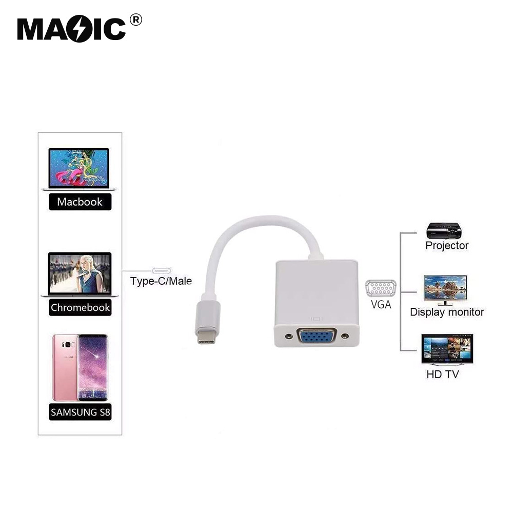 Magelei USB-C to VGA Adapter Thunderbolt 3 USB Type C to VGA Adapter Male to Female Converter Compatible for Apple New MacBook
