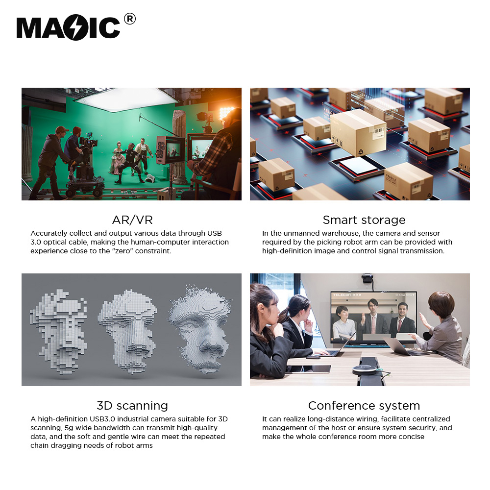 1. Light signal transmission, not afraid of electromagnetic interference 2. The light signal itself is more safer to use without radiation 3. The line body is small, which is convenient for engineering wiring on multiple occasions 4. Speed transmission, attenuation, 100 meters of transmission without delay solving the difficulty of long -distance transmission of copper line